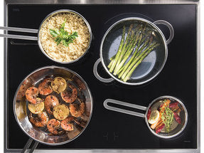 Blomberg electric ranges with sleek solid-surface cooktops offer more than a beautiful appearance and the benefit of effortless cleanup. They feature the versatile advantage of allowing you to create an extra-large, 12" cooking zone for fast, efficient cooking in oversize pots and pans of any shape, as well as with stovetop griddles.
